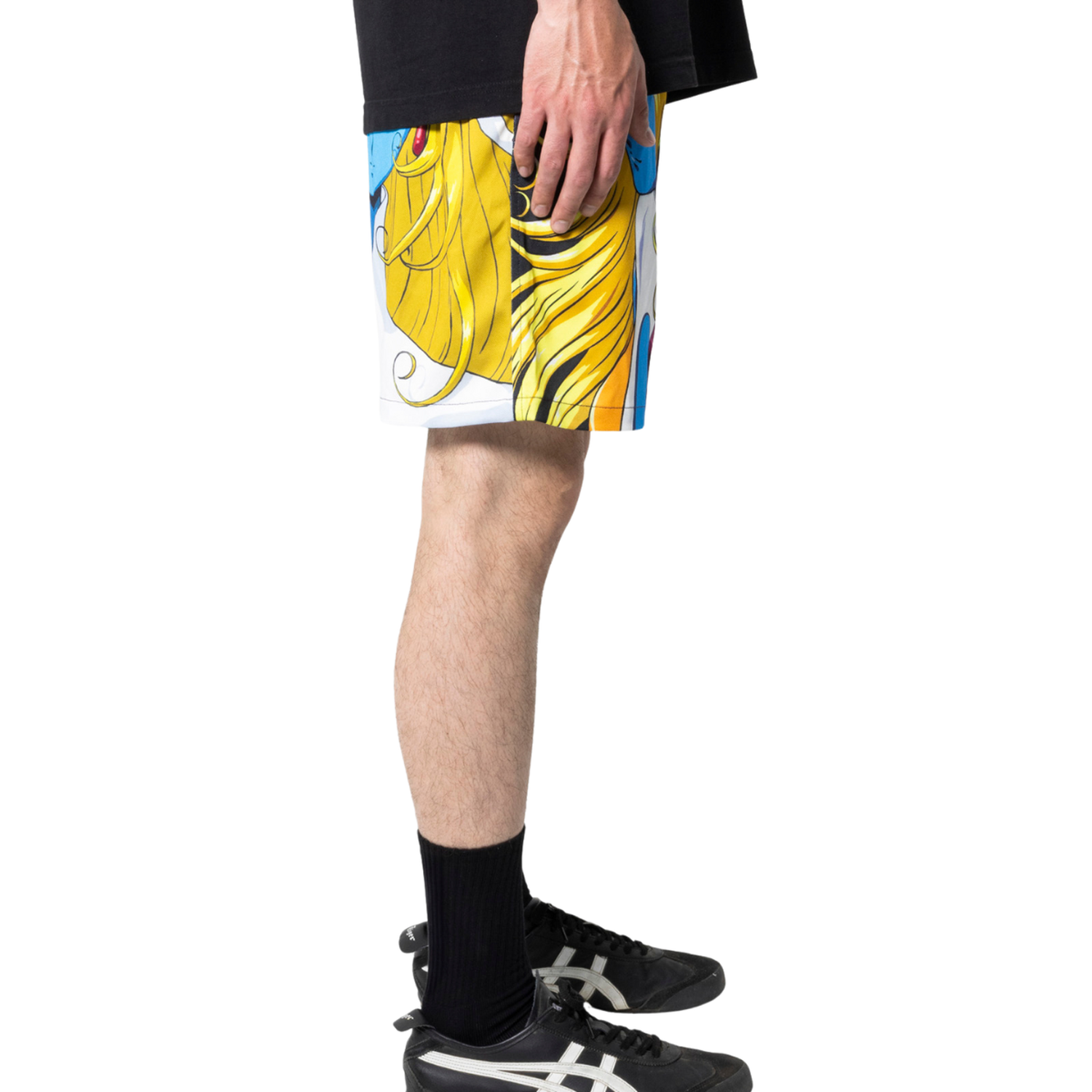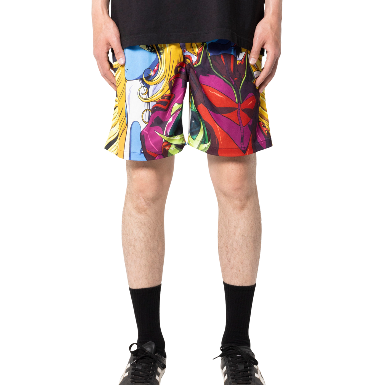Diseñados en colaboración con Daft Punk, estos shorts de satén destacan por sus audaces gráficos inspirados en el anime, extraídos directamente de la icónica película musical de ciencia ficción del grupo lanzada en 2003. La combinación de materiales lujosos con un arte visual vibrante crea una prenda única que fusiona moda y cultura pop de manera impecable. Cada detalle refleja la esencia futurista y estética distintiva de Daft Punk, haciendo de estos shorts una pieza imprescindible para los fanáticos y amantes del diseño vanguardista.