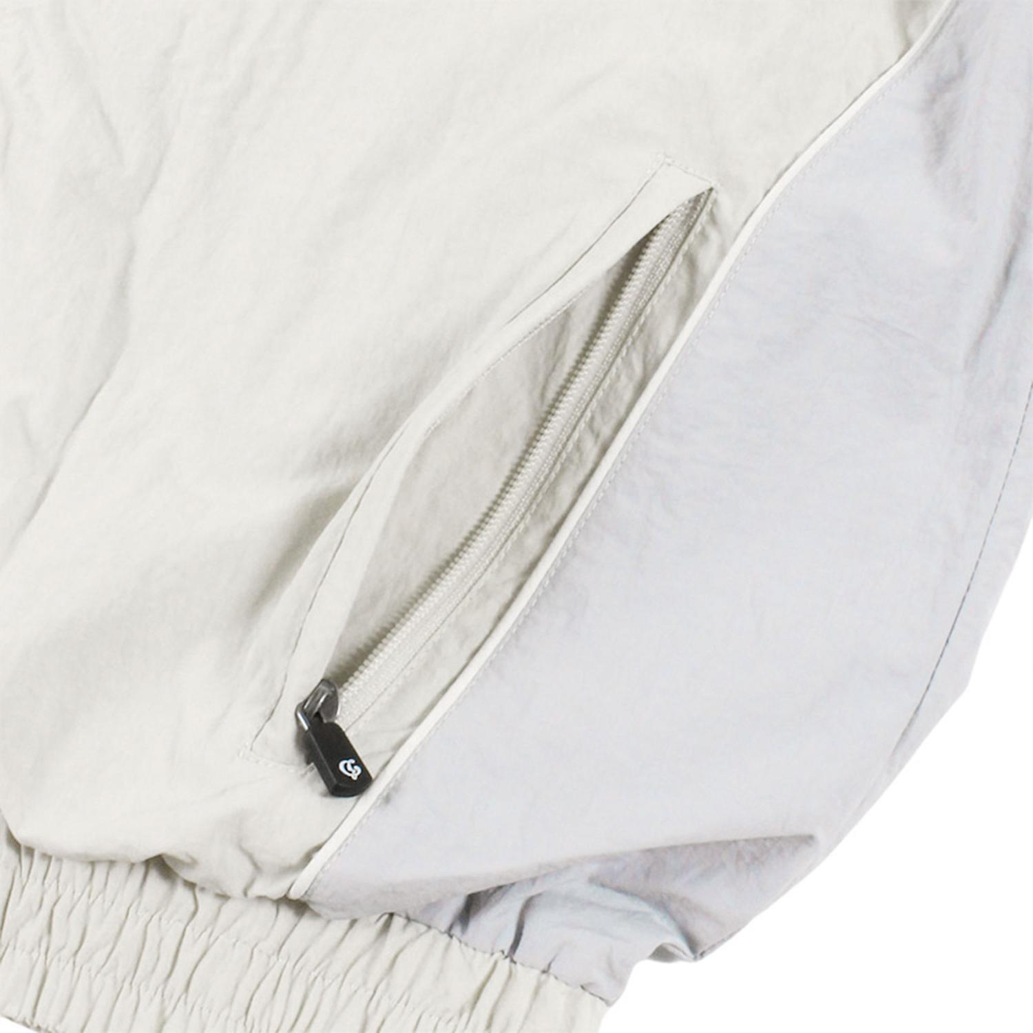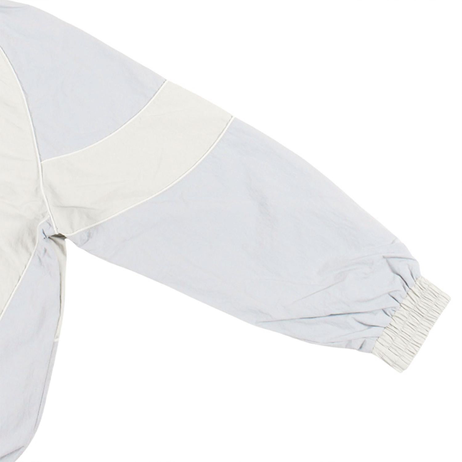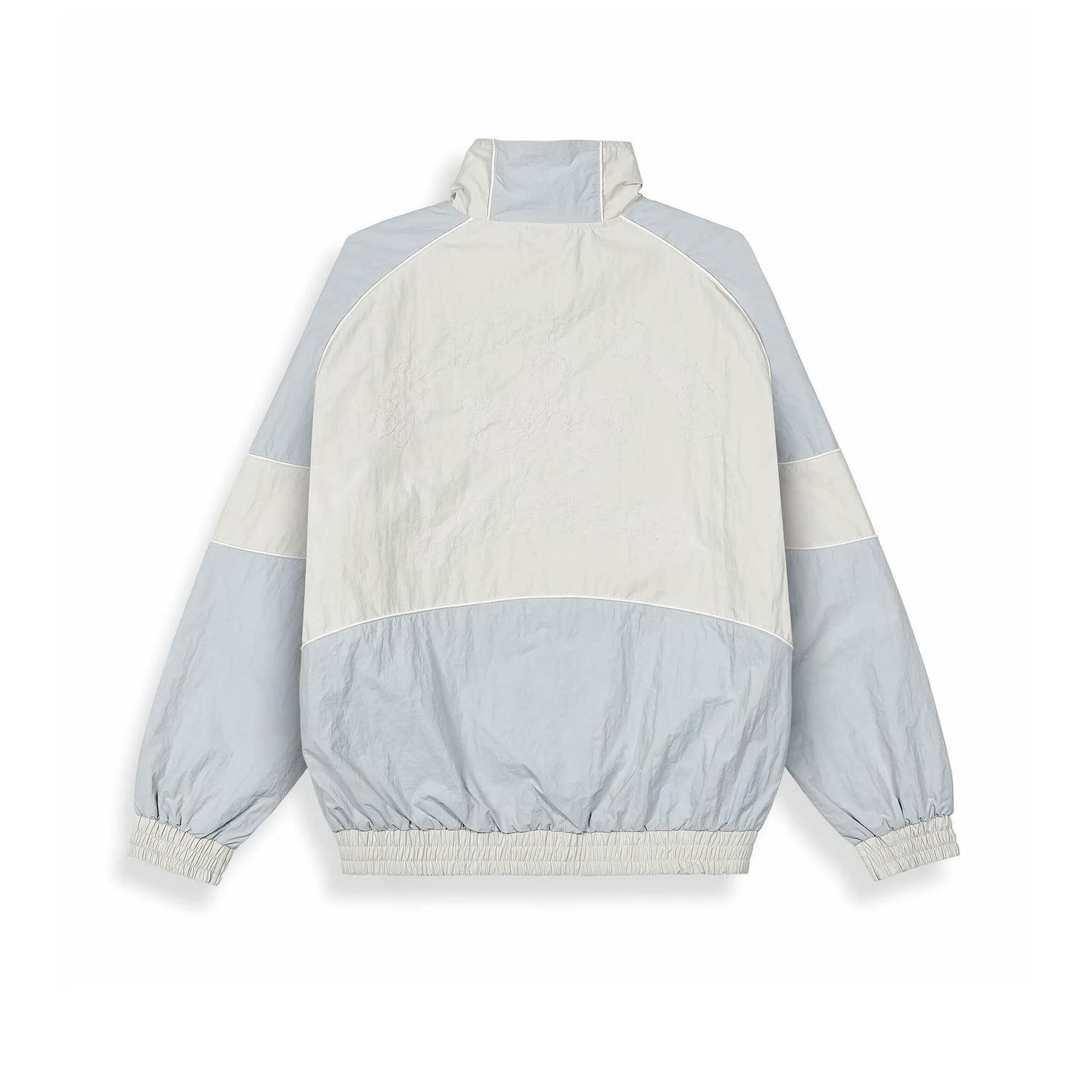 Versión en tono off white de la icónica track jacket Sampans de Grimey. Confeccionada en tejido técnico suave, presenta cierre completo, cuello alto y detalles contrastantes en los hombros. Un diseño que mezcla nostalgia deportiva y estética contemporánea, perfecto para quienes aprecian la moda urbana con estilo distintivo.