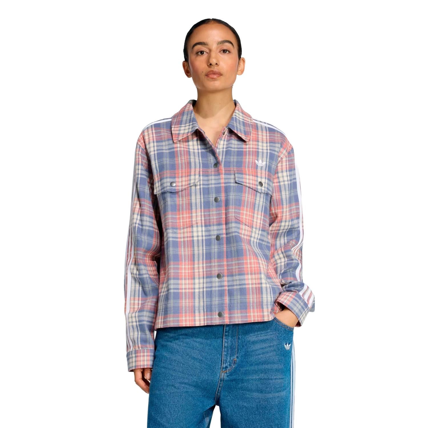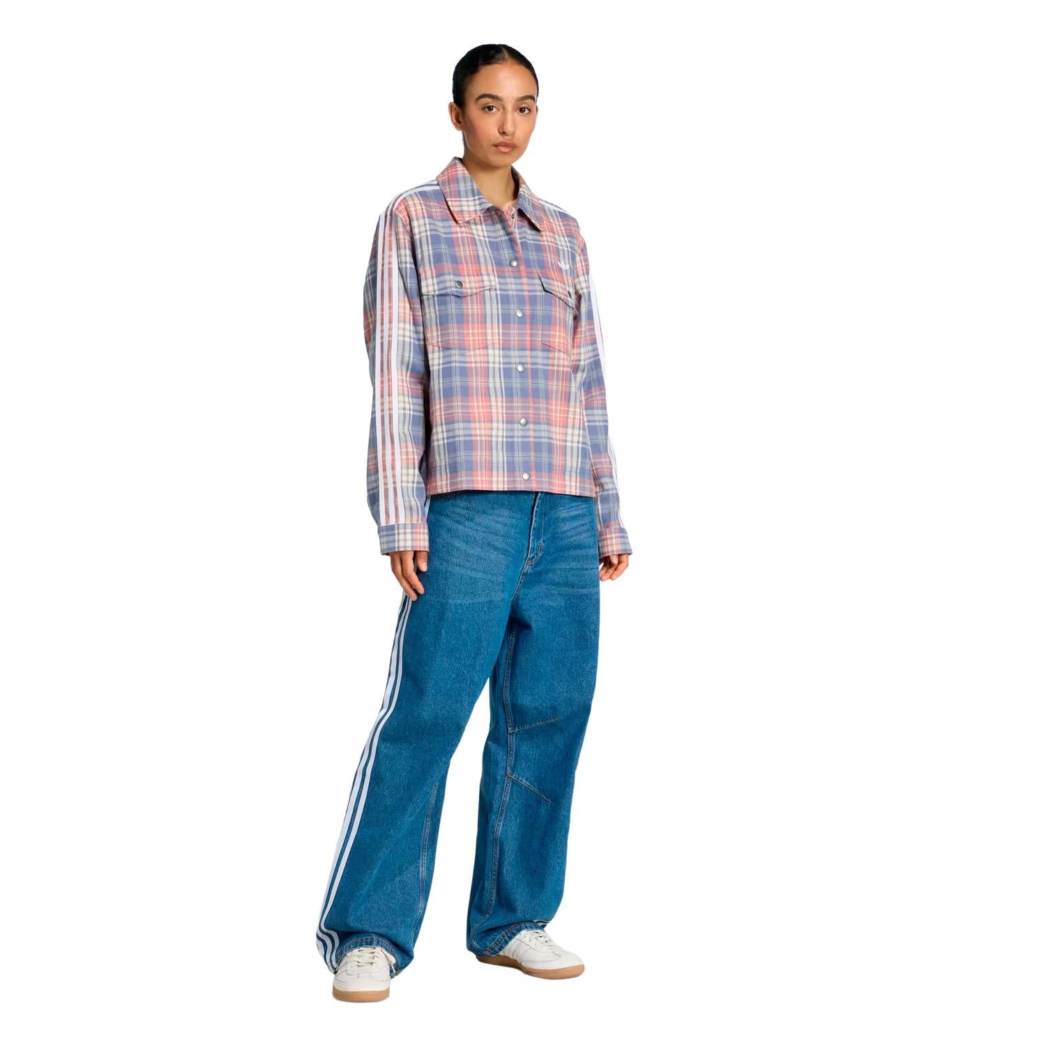 La chamarra adidas Originals Check Shirt es donde el estilo deportivo americano clásico se encuentra con un toque moderno. Con su corte holgado y su tejido de franela, esta chamarra proporciona libertad de movimiento, al tiempo que destaca con estilo moderno. Fabricada con material transpirable, ofrece comodidad y un tacto suave sobre la piel. La construcción de sarga tejida proporciona durabilidad, convirtiéndola en una adición adecuada a tu colección informal. Los botones a presión y los bolsillos del pecho ofrecen funcionalidad, mientras que los adornos de estrellas grandes y pequeñas en las mangas añaden un toque distintivo a tu vestuario. Tanto si sales a pasar un día informal como si te pones una capa para salir por la noche, esta chaqueta te tiene cubierto.