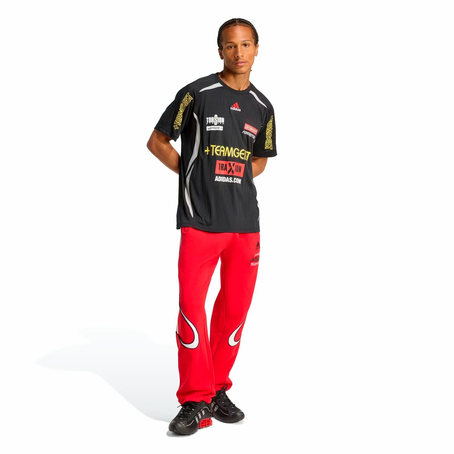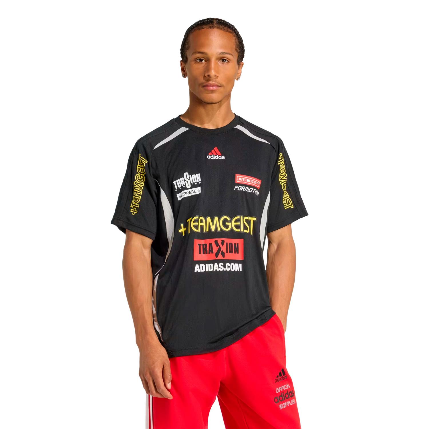 La Playera adidas Teamgeist Moto Graphic te dará un gran estilo en la ciudad, esta prenda de la marca alemana encajará con todo lo que ya tienes en tu armario. Presenta un corte ligeramente holgado con mangas cortas y cuello redondo, se ajustará de manera perfecta a tu cuerpo y te podrás mover con una total libertad. El tejido es transpirable y amigable con tu piel. Su diseño moderno y deportivo destaca por los gráficos llamativos, ideales para cualquier ocasión casual.